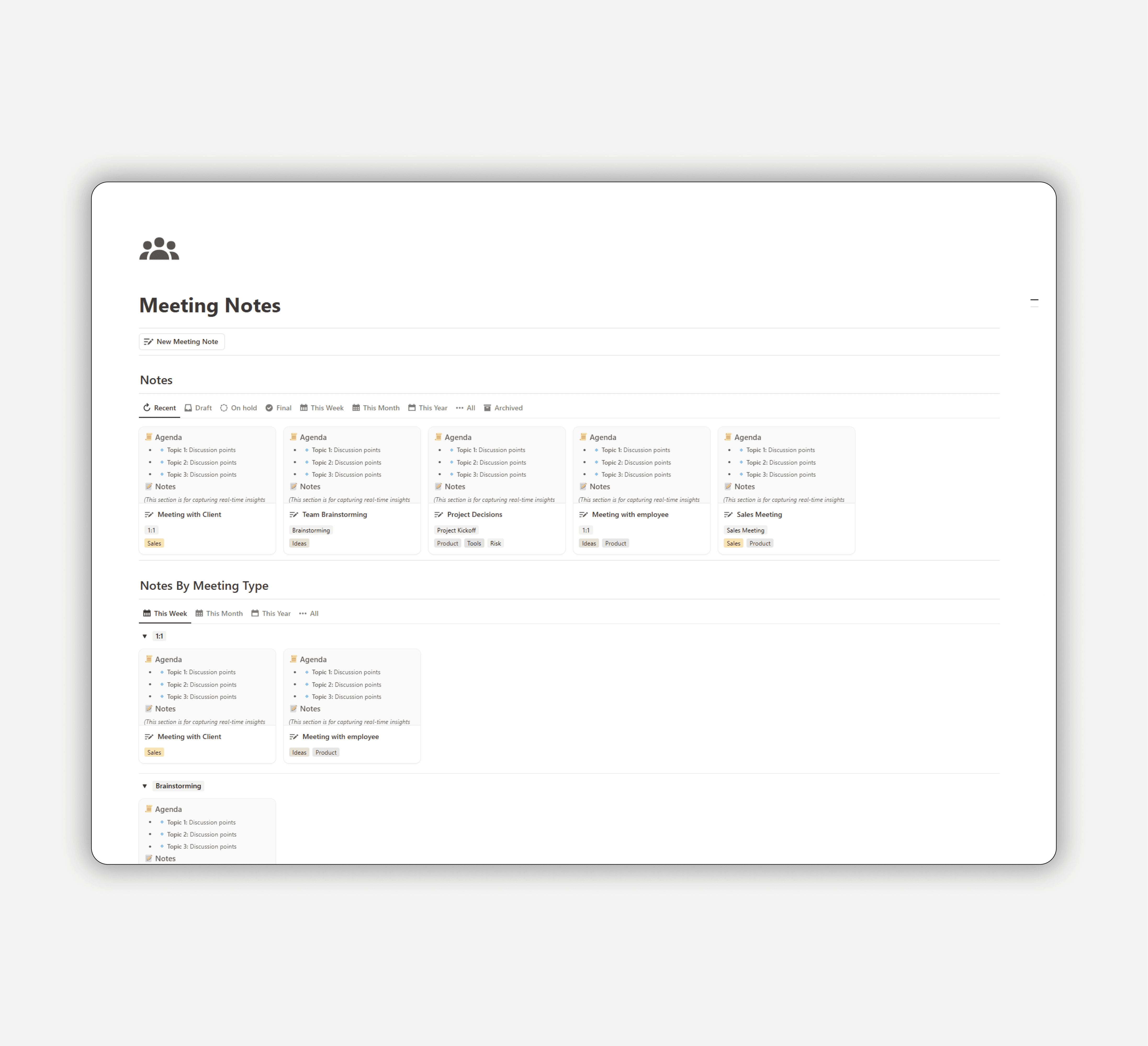 Designed to help you capture, organize, and track notes from every meeting.
