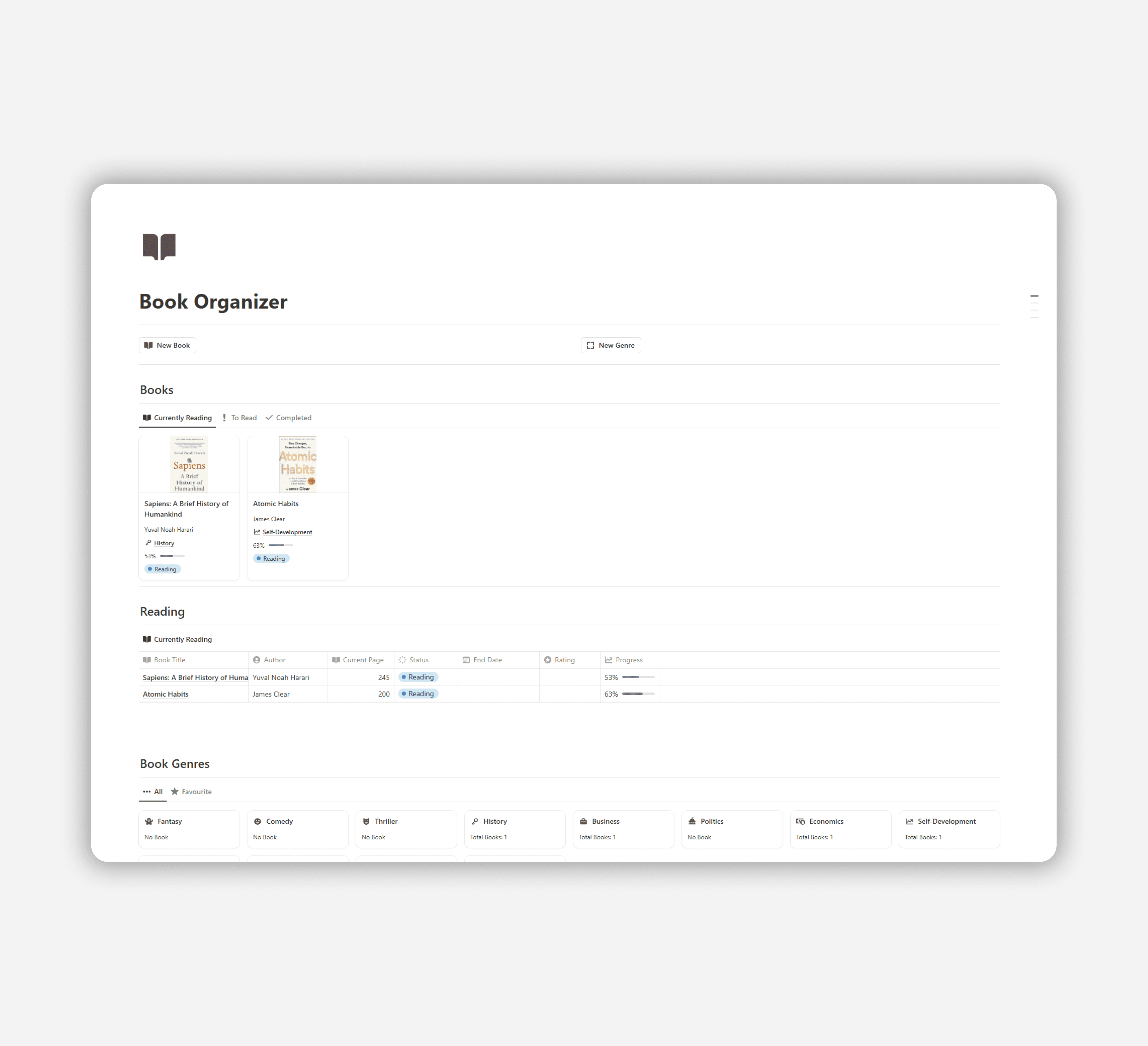 Easily track, categorize, and manage your reading list.