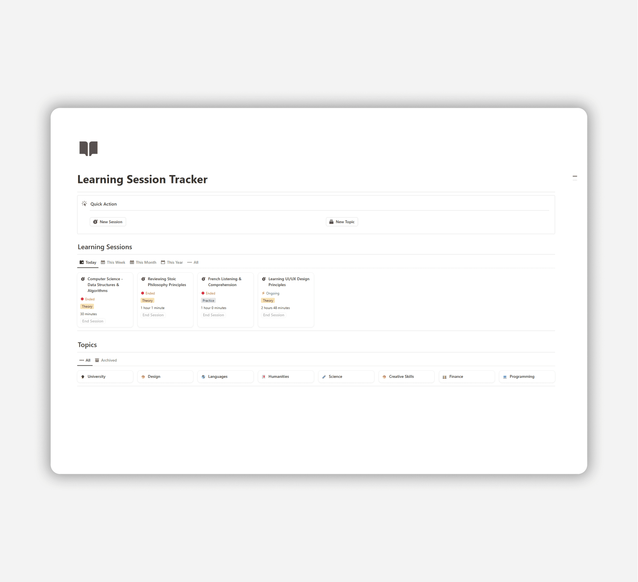 Stay on top of your learning with easy session tracking.