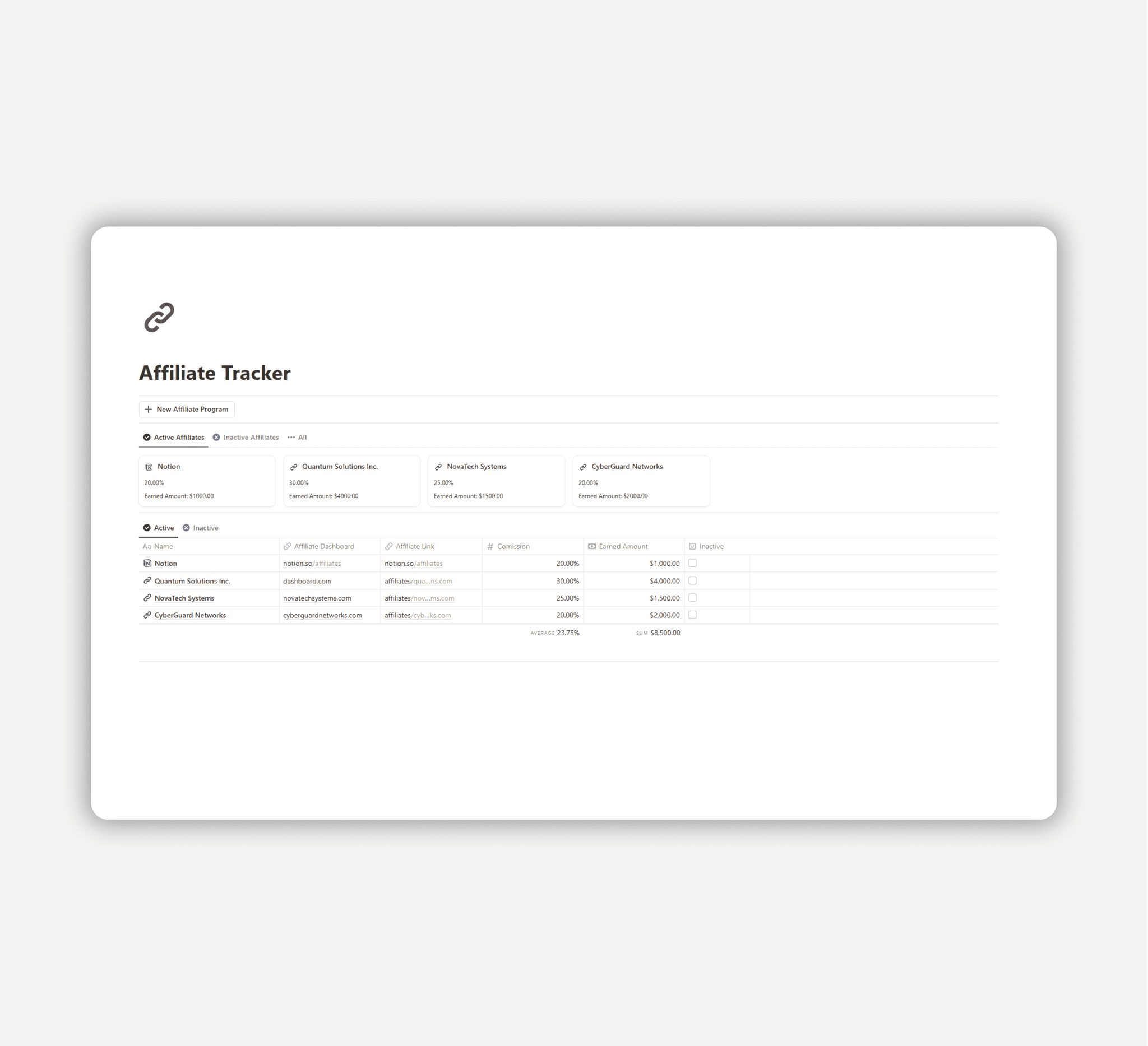 Keep all your affiliate programs organized in one place.