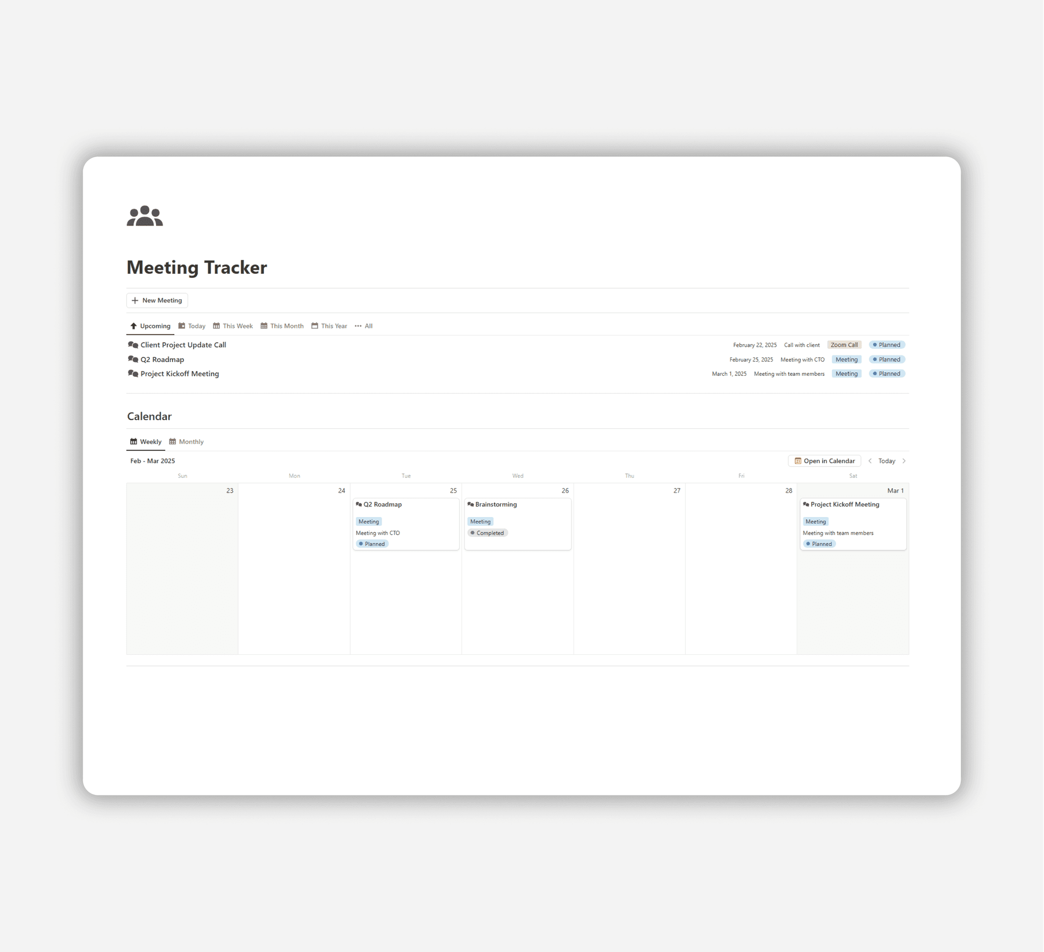 Plan, track, and organize your meetings efficiently—all in one place.