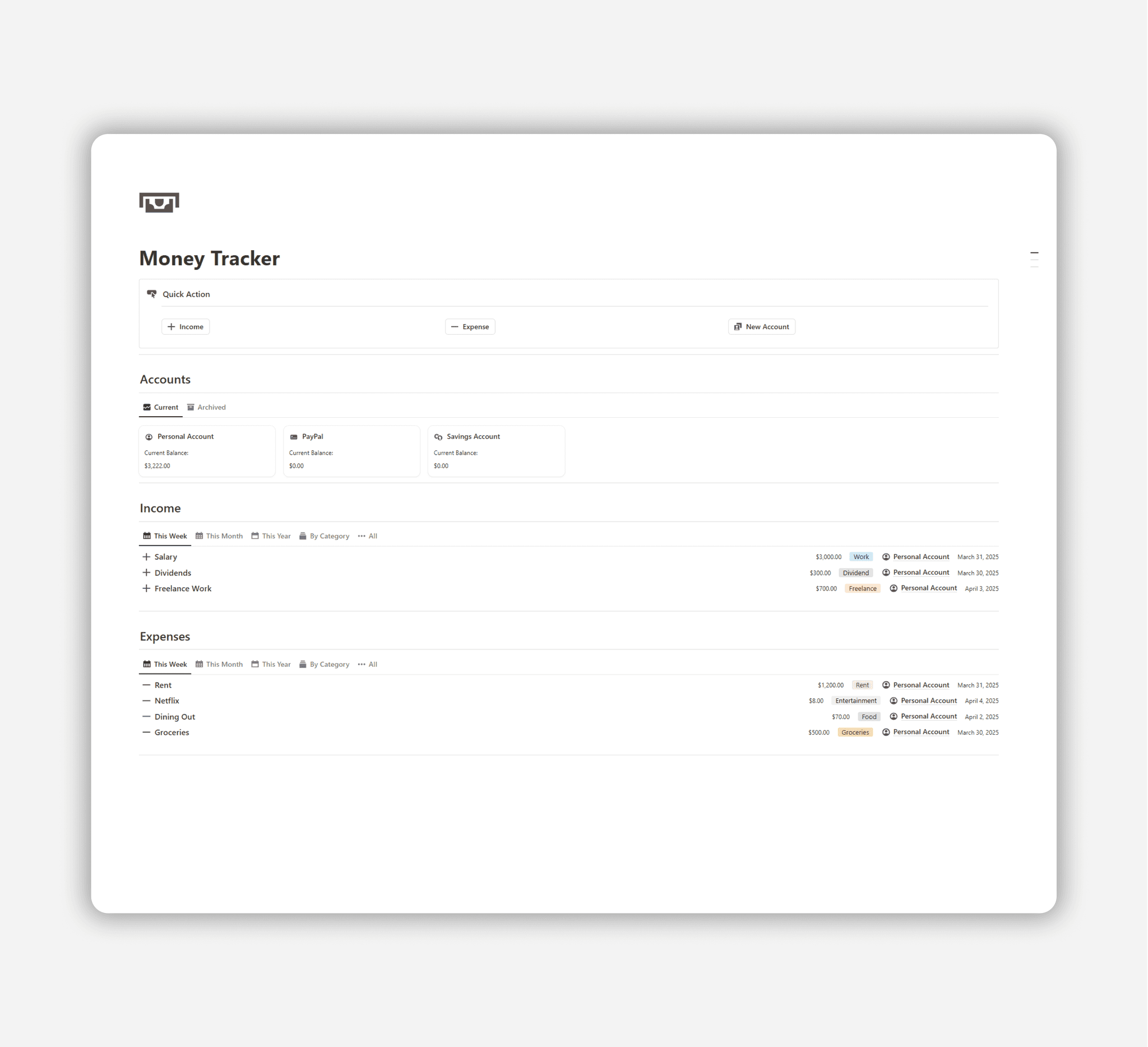 Make smart financial decisions with the Notion Budget Tracker.