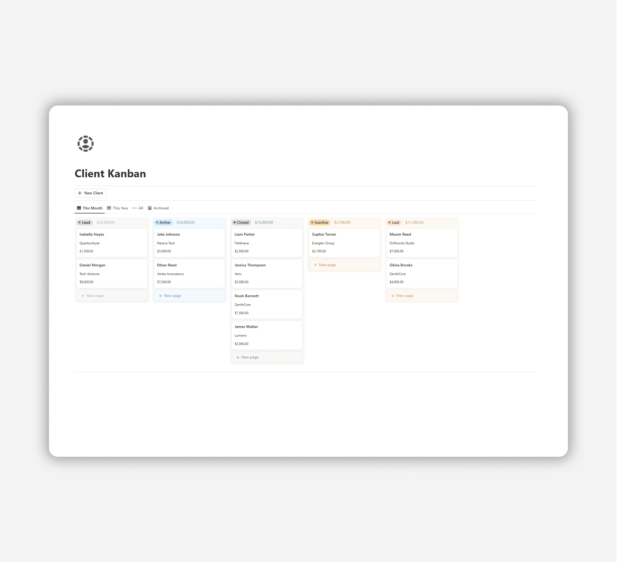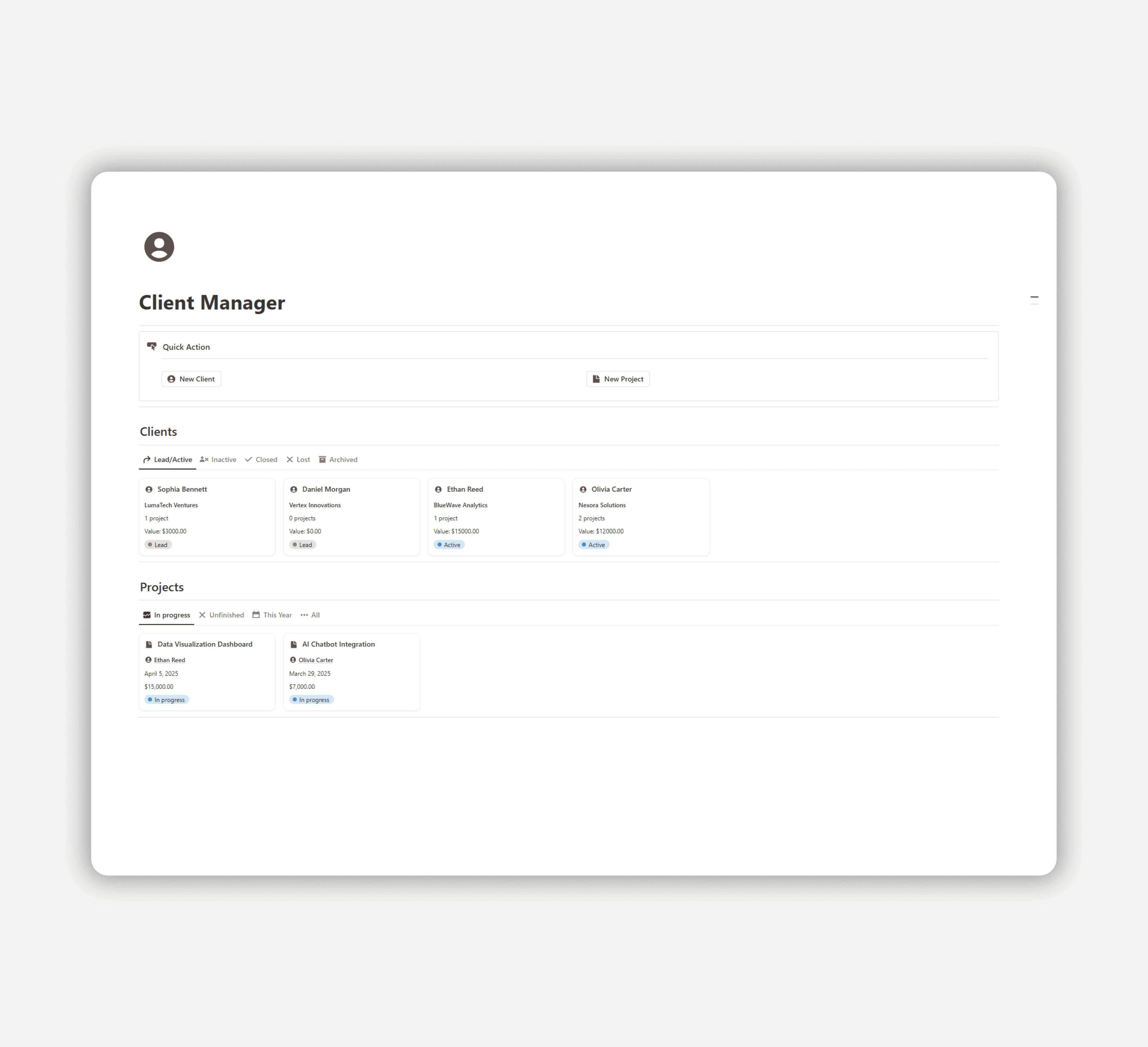Efficiently track clients and projects in one place.
