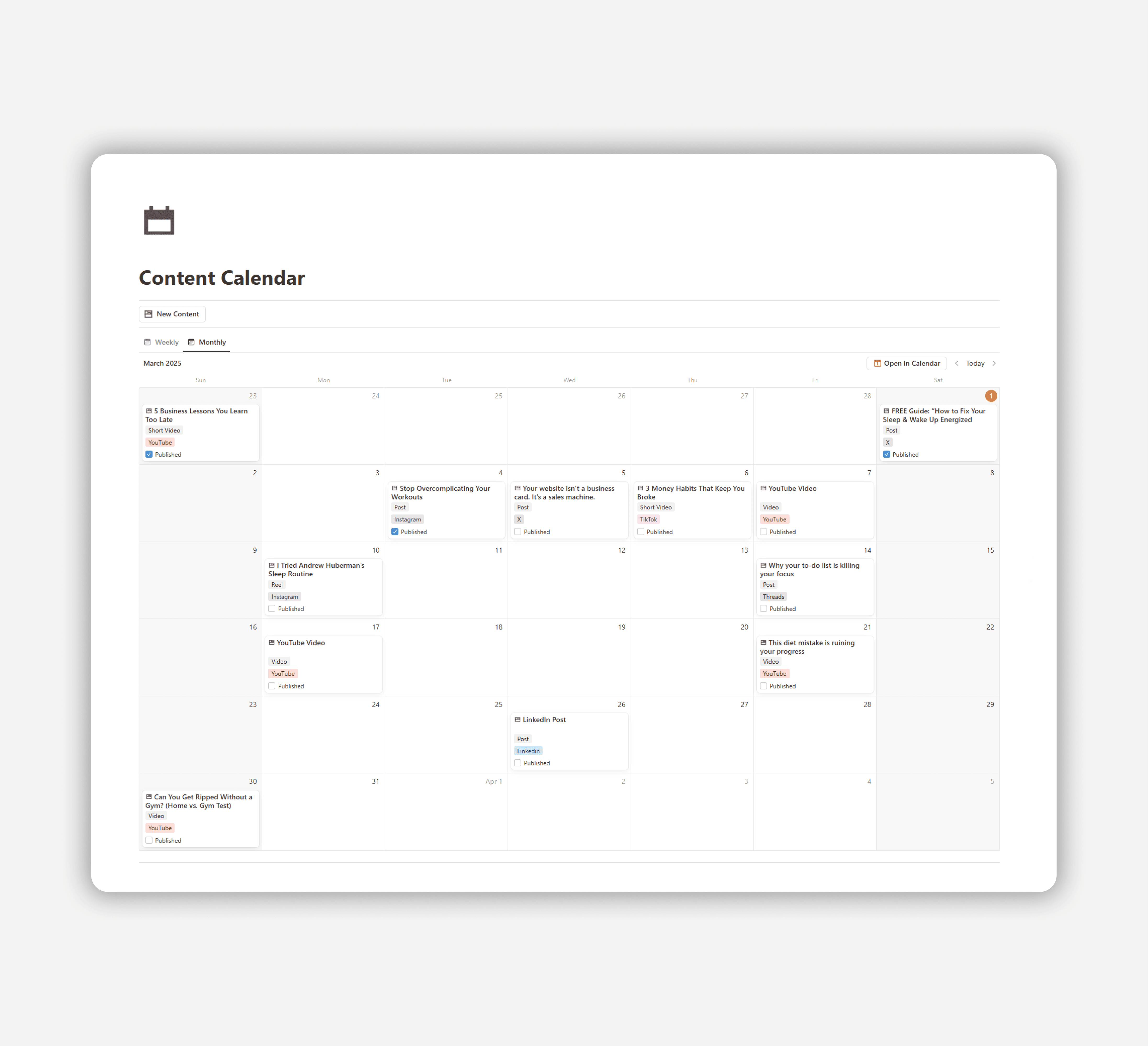 Content Calendar