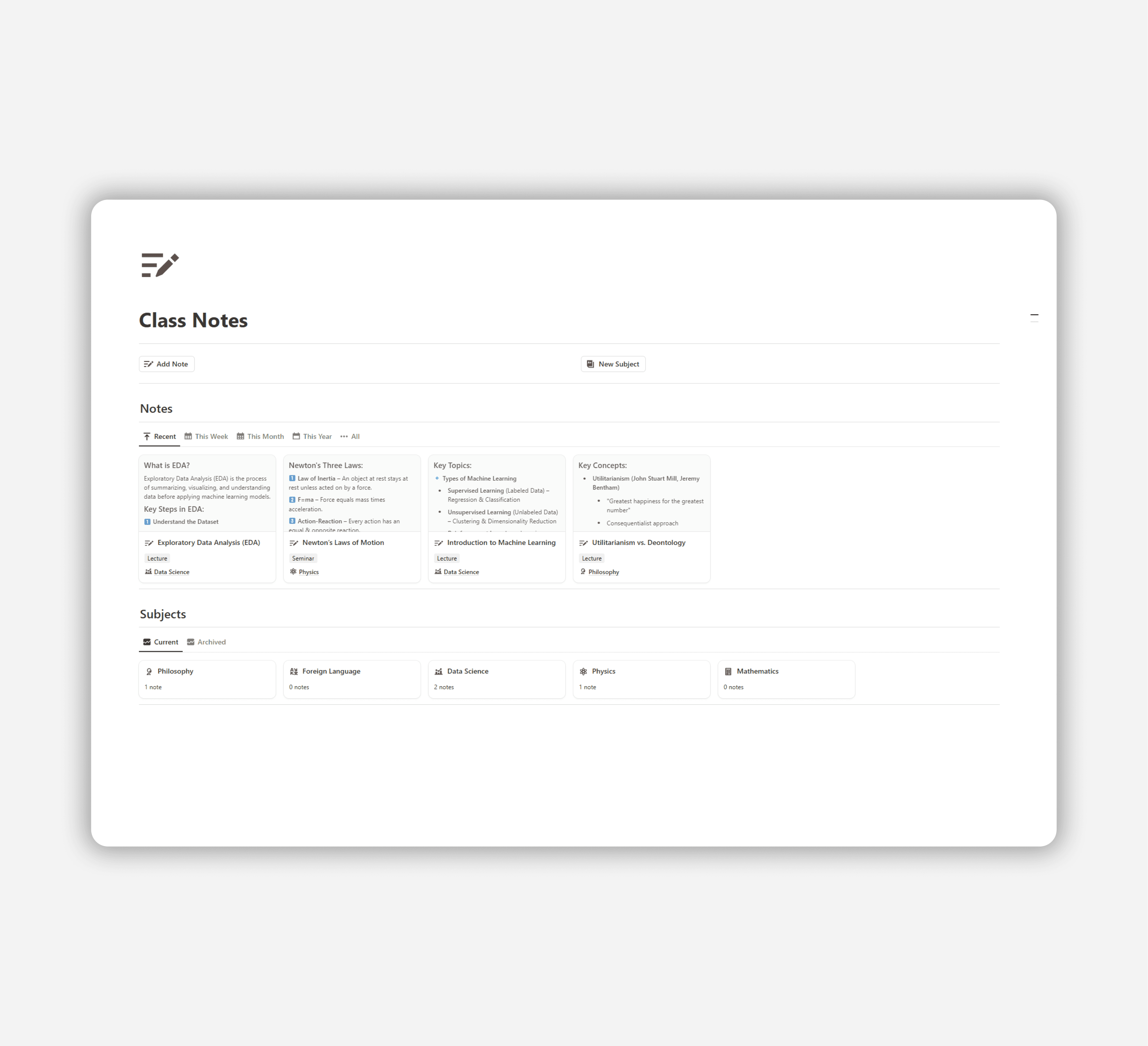 With Notion Class Notes, studying becomes more efficient, structured, and engaging.