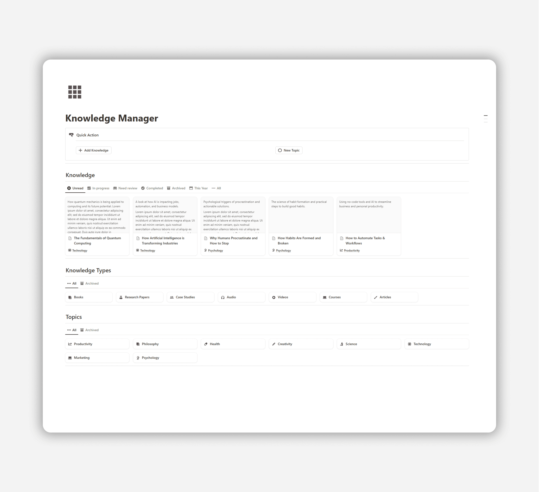 Keep your knowledge organized and easy to find.