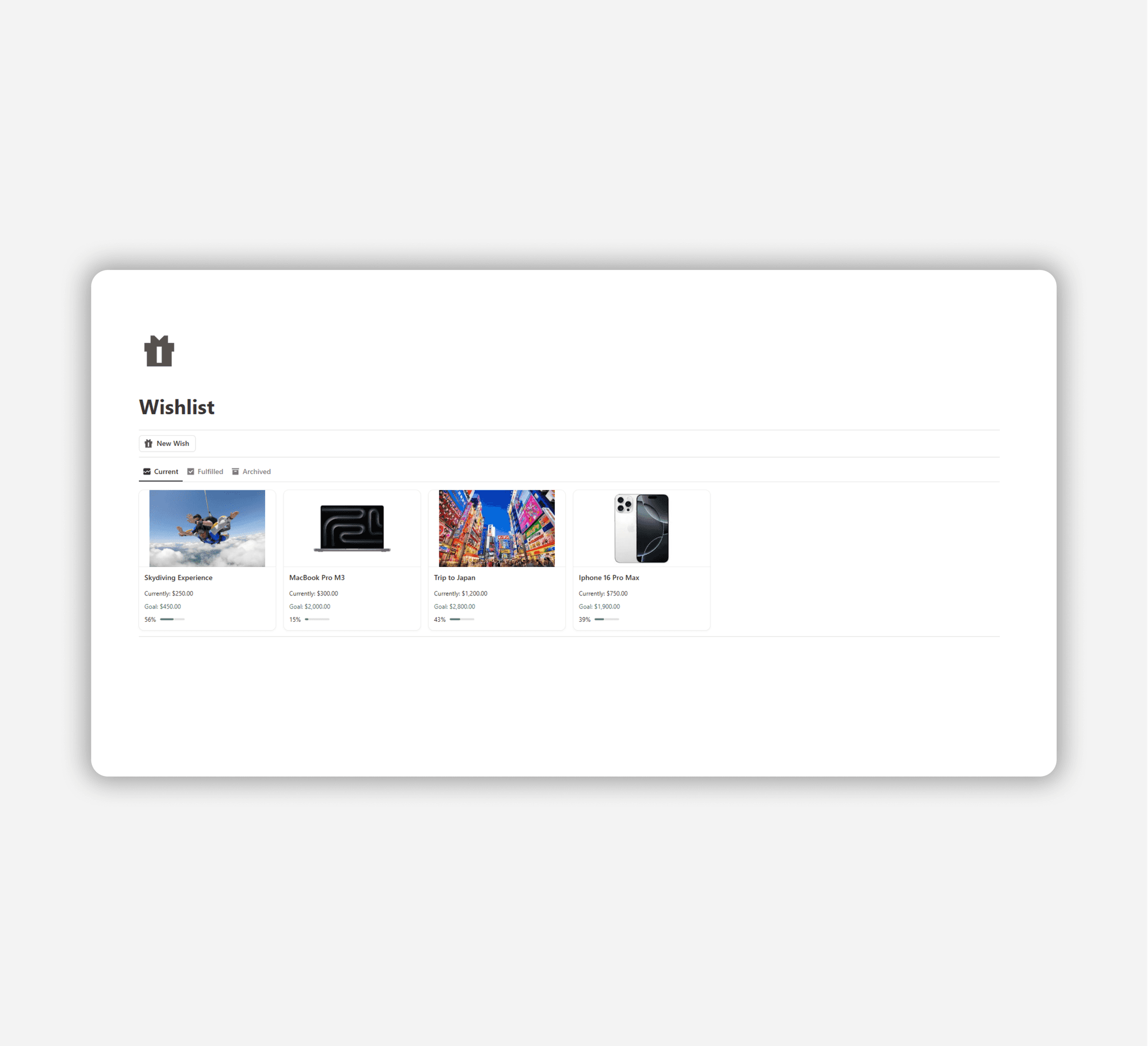 Keep track of everything you want, from must-haves to dream goals.