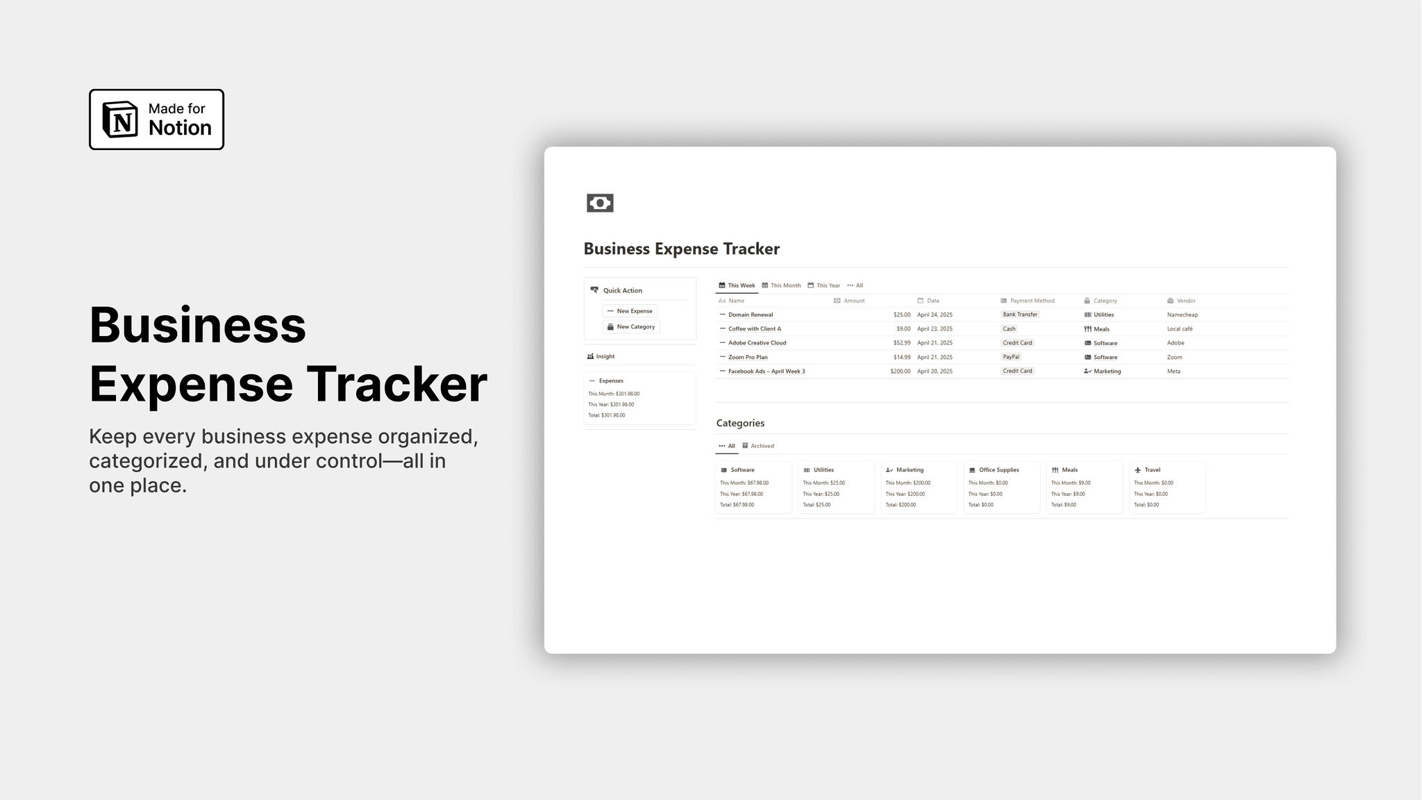 Whether you’re a freelancer, a small business owner, or managing a startup, Business Expense Tracker helps you keep your spending in check, optimize your budget, and stay organized all year round.