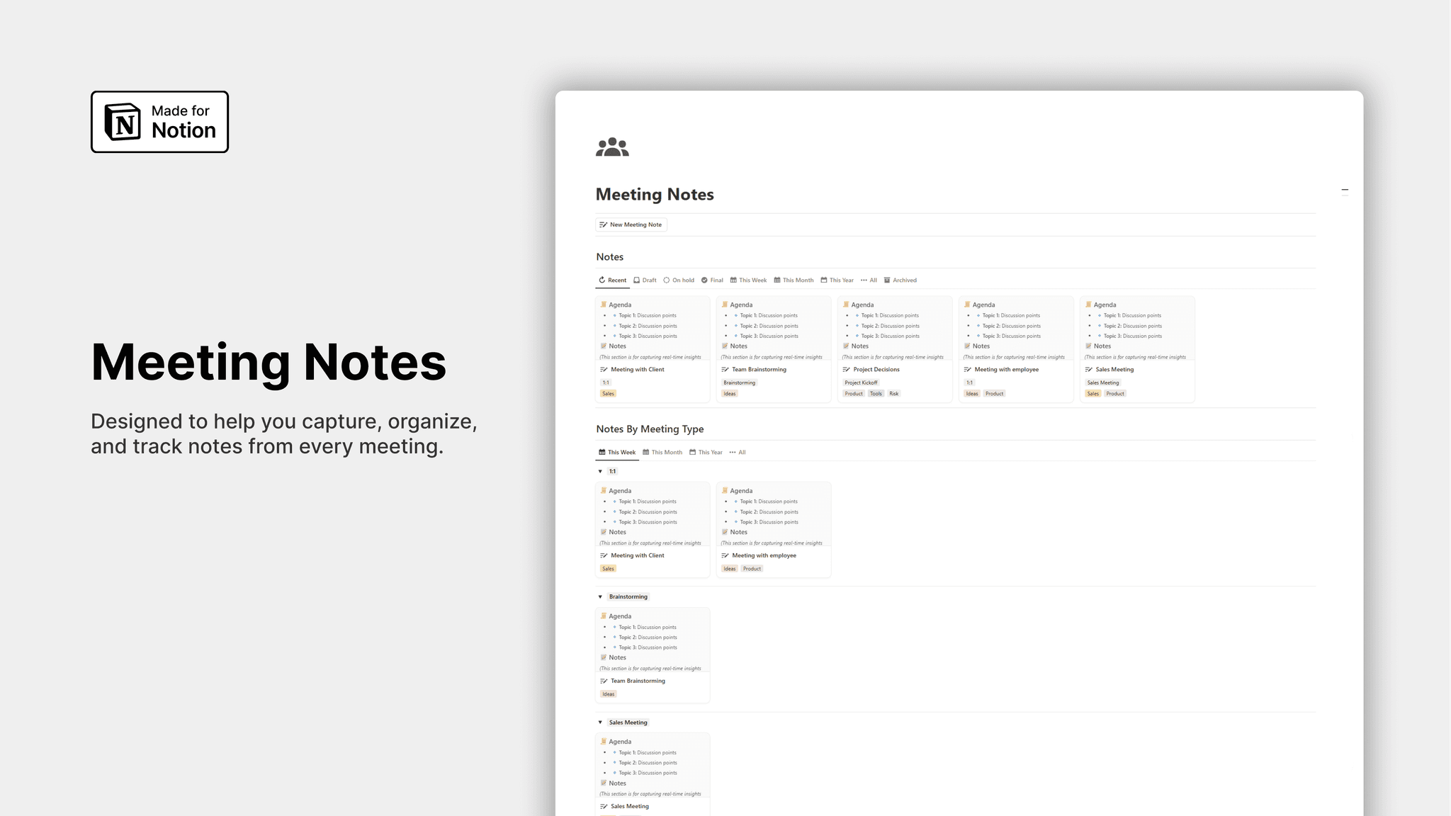 Keep your meetings productive and actionable with Notion Meeting Notes—the smarter way to document and follow through!