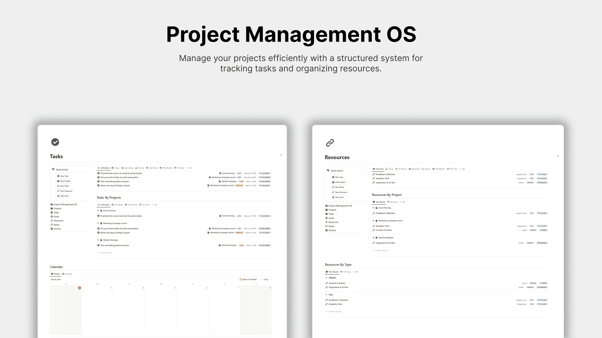 Notion Project Management OS is an advanced Notion system designed to help teams and individuals efficiently plan, track, and execute projects. It provides a structured system to manage tasks, set goals, organize resources, and monitor progress—all in one place.